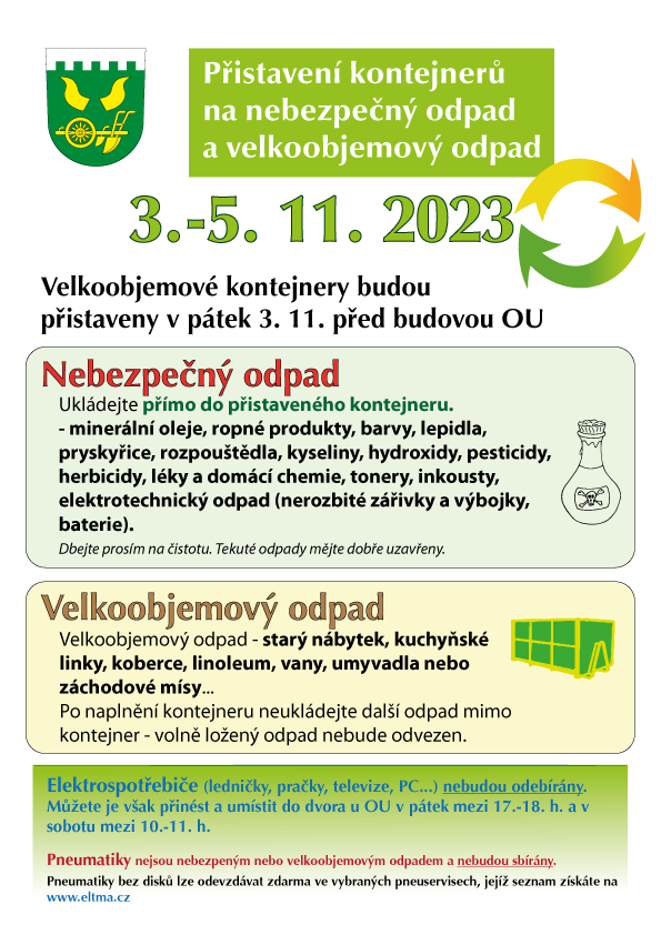 Úvod > Aktuality > Oznámení o přistavení velkoobjemových kontejnerů na nebezpečný a velkoobjemový odpad