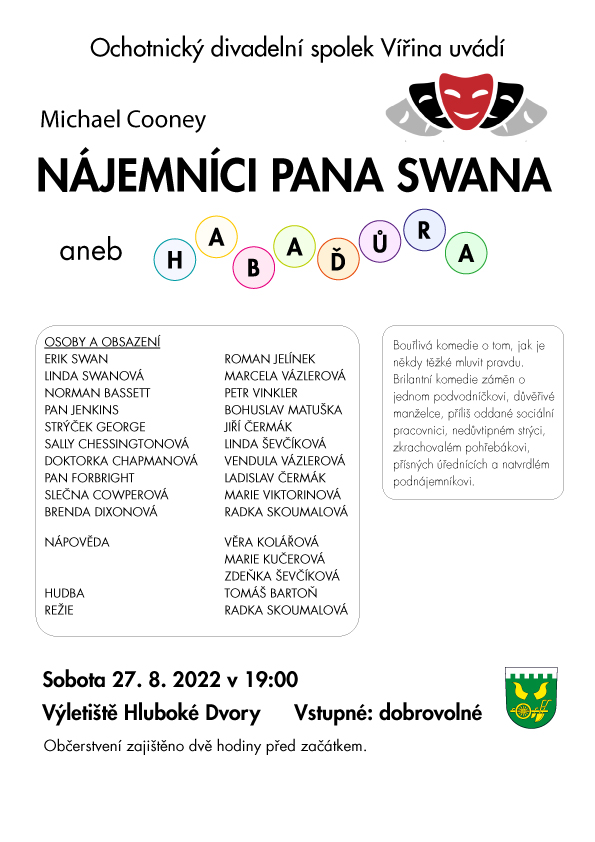 Pozvánka na druhé divadelní představení v Hlubokých Dvorech 2022