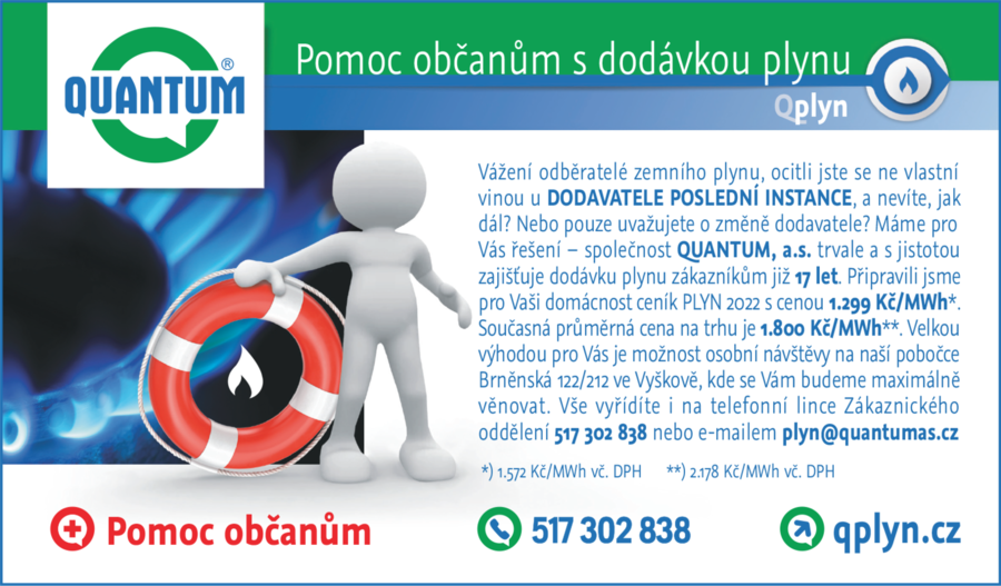 Pomoc občanům s dodávkou plynu od QUANTUM