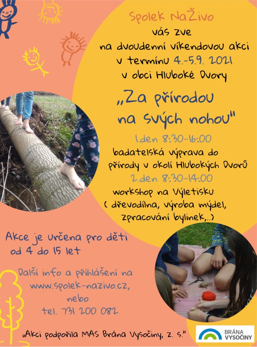 O víkendu  4.-5. 9. 2021 je pořádána akce v Hlubokých Dvorech pro děti od 4 do 15 let. Akci organizuje Spolek NaŽivo s podporou MAS Brána Vysočiny, z.s.